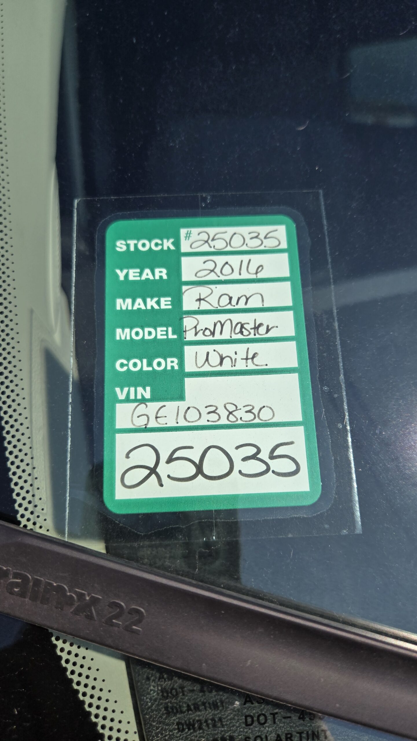 Year/Make/Model: 2016 Dodge Ram ProMaster 2500 High Roof
