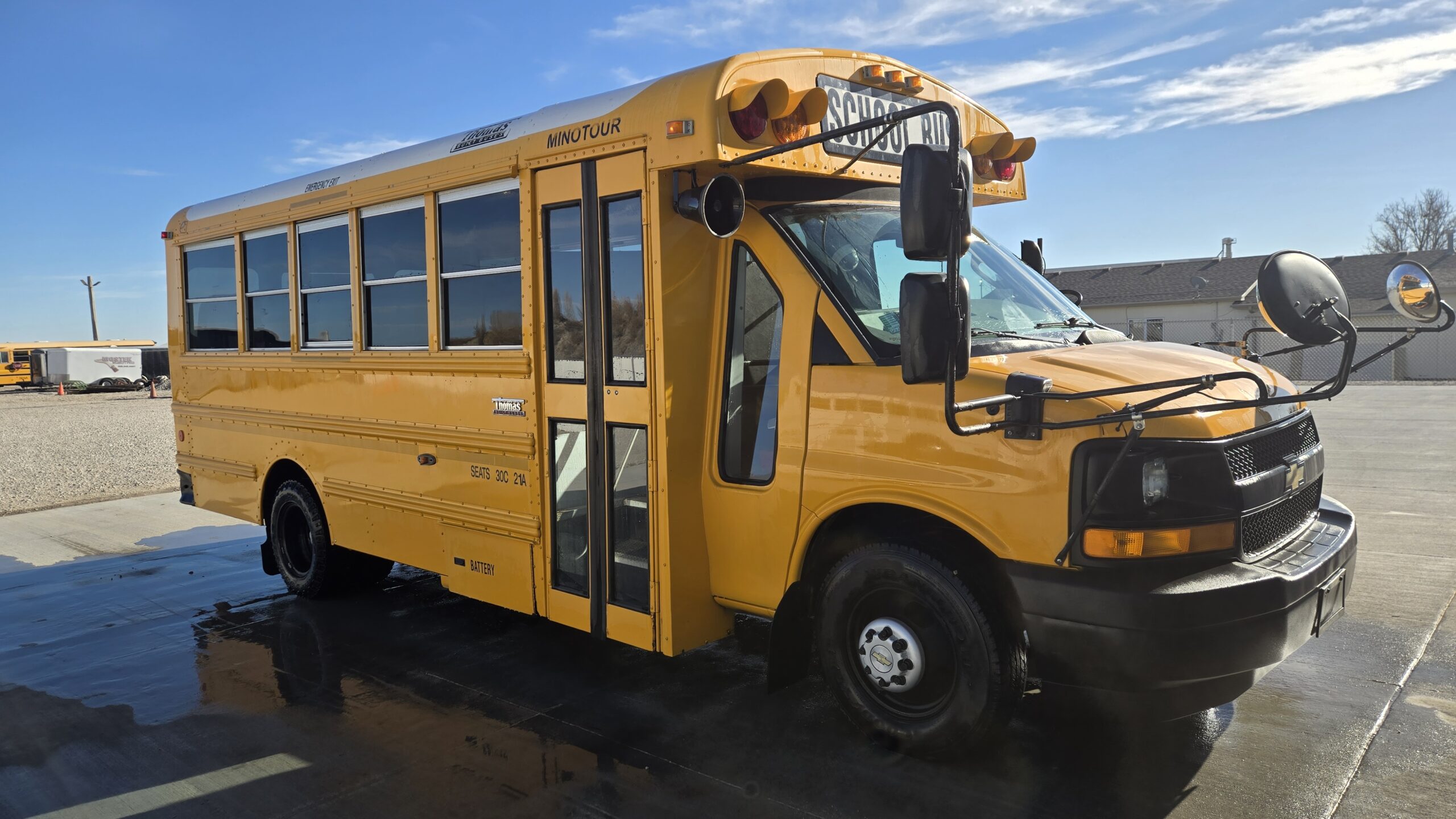 2018 Chevrolet Express Thomas Minitour School Bus, built on the reliable Chevy Express cutaway chassis with a Thomas Built Buses Minitour body. A proven solution for schools, daycares, churches